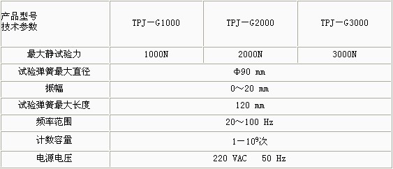 產品概述: TPJ-G系列彈簧高頻疲勞試驗機采用電磁激勵、試件(彈簧)共振原理,系統(tǒng)自動處于最佳諧振狀態(tài),彈簧拉壓試驗機檢定規(guī)程,勿需調整,起動一觸即發(fā),性能穩(wěn)定可靠。操作簡單,進口彈簧試驗機,操作人員勿需培訓。 功能特點: 試驗機設有振動次數(shù)及頻率的數(shù)字顯示及次數(shù)預置、記憶等功能。該機既可以做單對彈簧的試驗,扭力彈簧試驗機,也可做多對彈簧的試驗機。 技術參數(shù):